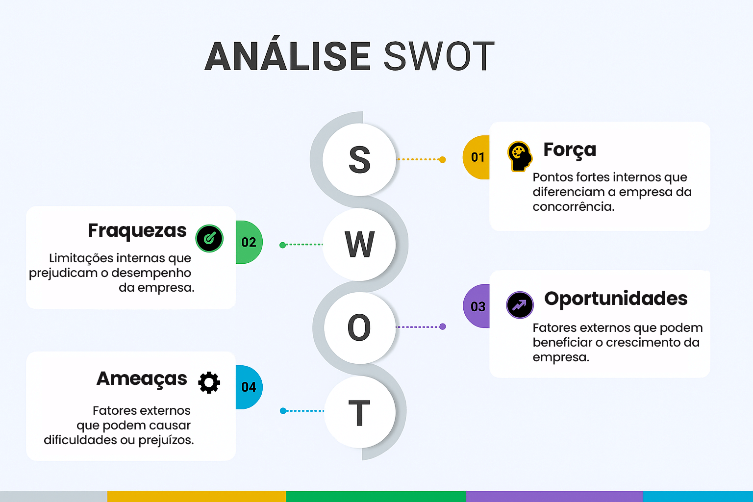 Com essa visão completa, podemos desenvolver estratégias que maximizem as forças e oportunidades, enquanto minimizam as fraquezas e ameaças.